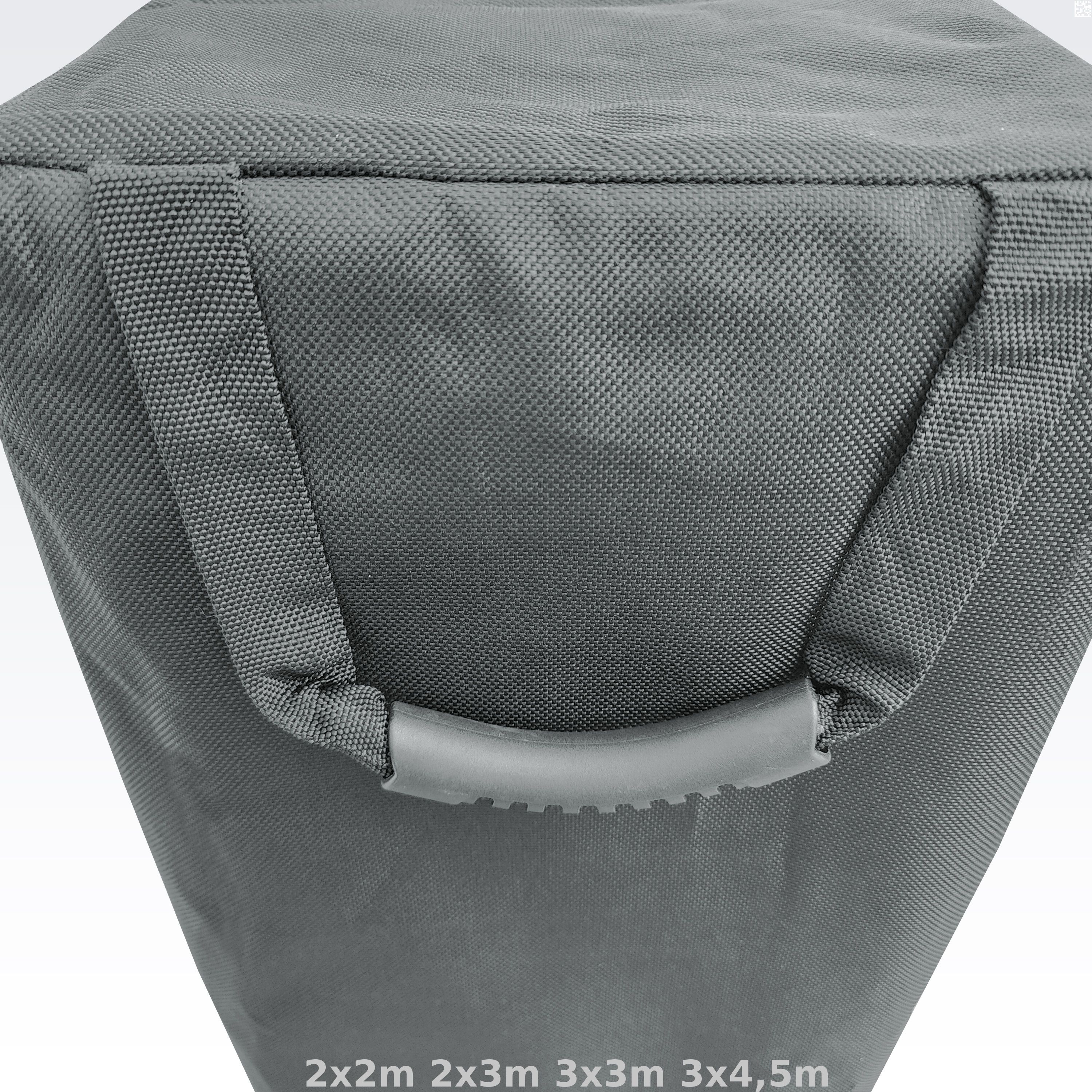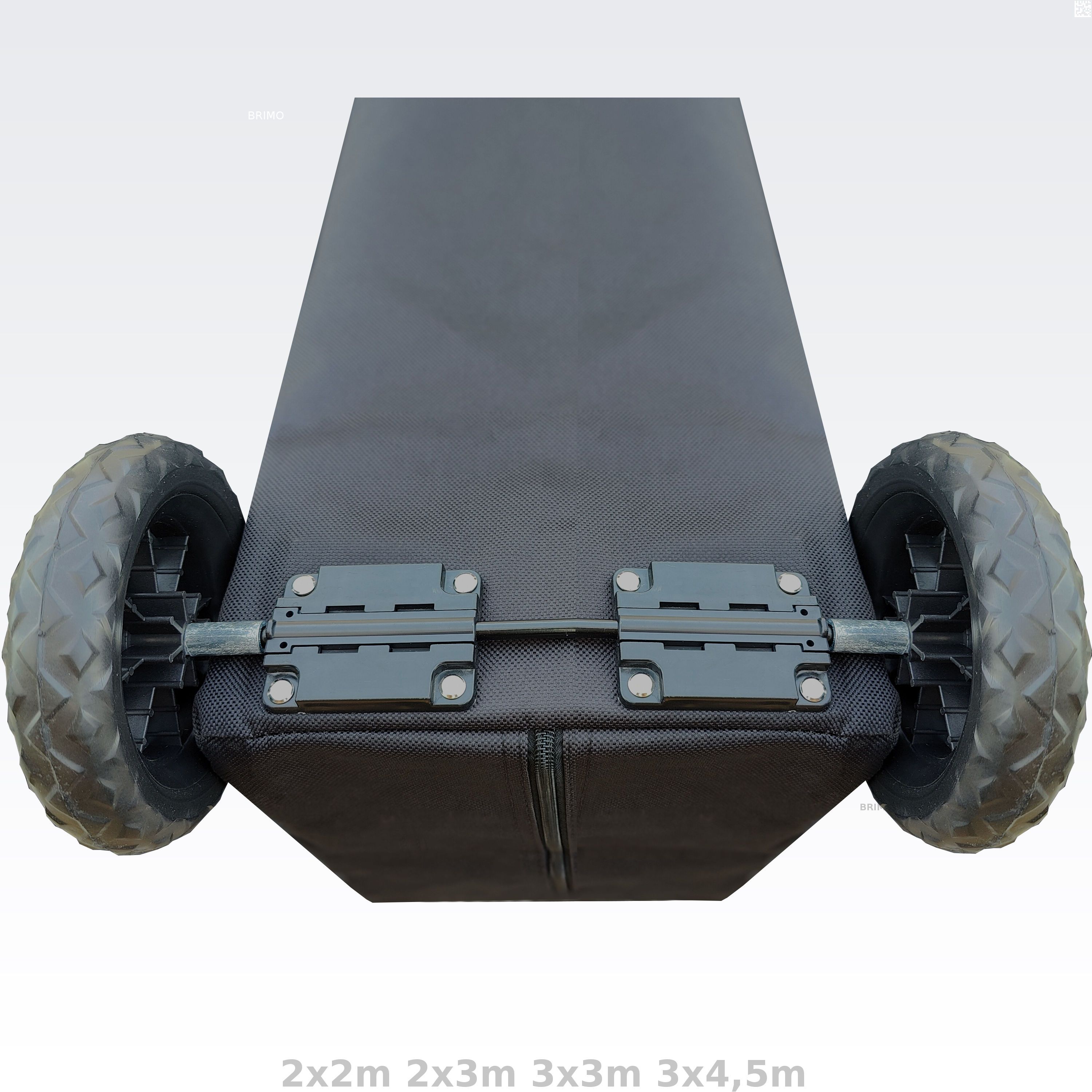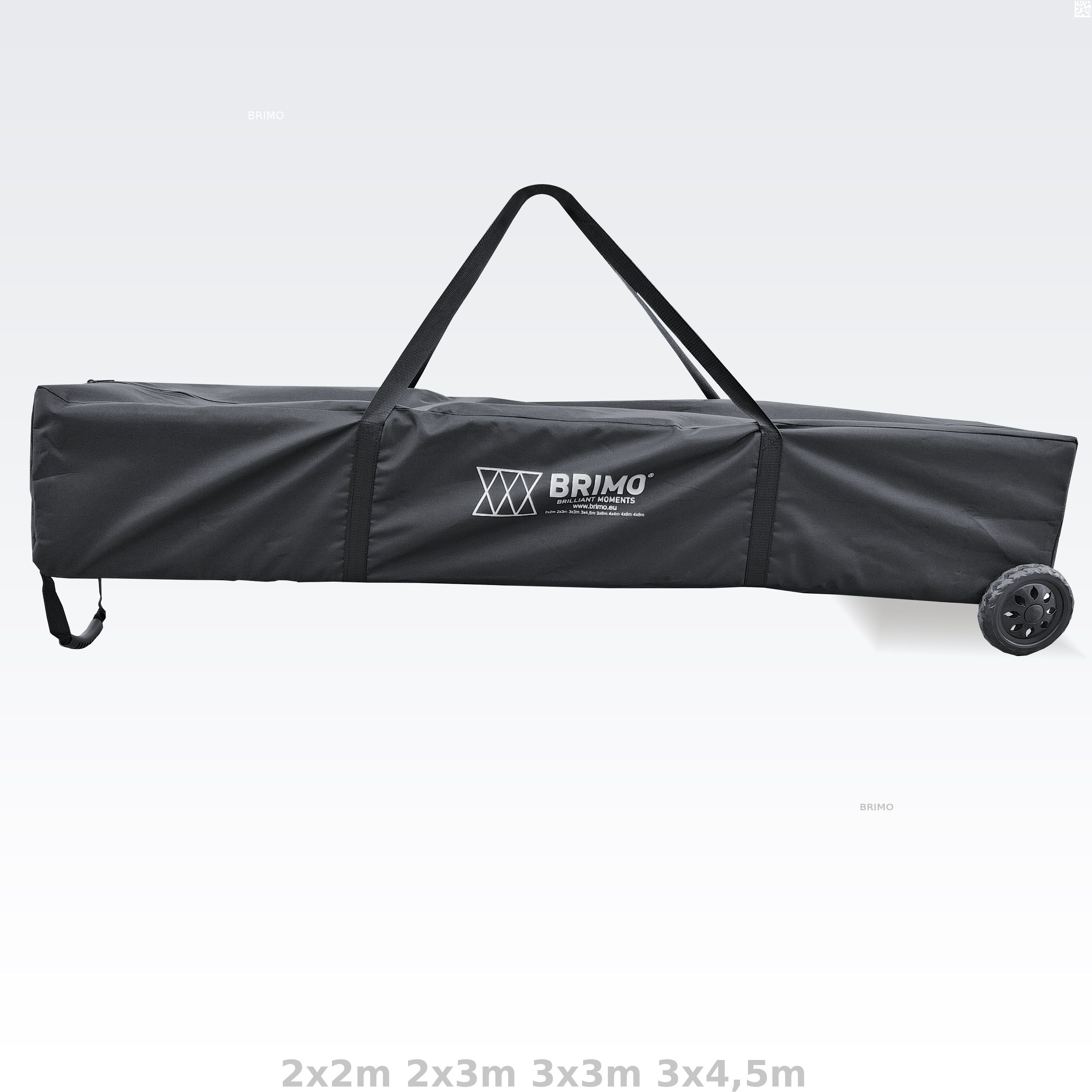 La borsa per il trasporto è realizzata in resistente tessuto di nylon, raddoppiato nelle parti più sollecitate. Alcune borse hanno delle pratiche ruote integrate nella parte inferiore che consentono il trasporto come una valigia da viaggio. I clienti che partecipano spesso a saldi, fiere, in altre parole usano tende tutti i giorni, apprezzeranno una borsa che faciliterà loro il trasporto della tenda.