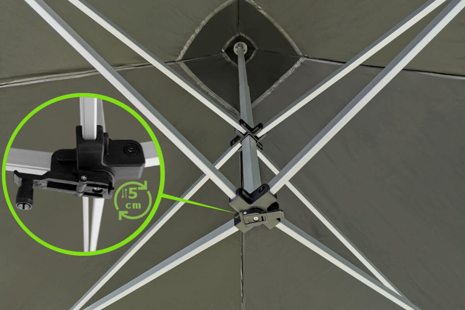 La costruzione della tenda è stata studiata per essere facilmente trasportata dopo la piegatura. I collegamenti a vite costituiscono la base dell'intero meccanismo di apertura. Le gambe della tenda sono di profilo quadrato su piedi robusti. Stabilità e forza sono una cosa ovvia. Ogni parte della tenda può essere sostituita in caso di danneggiamento. Diamo anche i pezzi di ricambio gratuitamente il primo anno dopo l'acquisto della tenda.