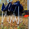Il telo impermeabile del tetto e le pareti laterali sono realizzati in resistente poliestere rivestito con uno strato di PVC all'interno. La cucitura è doppia più incollata. Ogni tela che produciamo è impermeabile al 100% e adatta per la stampa con il tuo logo.