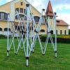 Il tessuto del tetto in poliestere è integrato con uno strato di PVC dal lato interno. Ogni cucitura è doppiamente cucita e nastrata con nastro termico. Puoi usare le tende a forbice ovunque in giardino, come riparo sulla terrazza o anche in occasione di mostre o fiere come tenda di vendita. Un enorme vantaggio è la costruzione a forbice, che può essere facilmente costruita in pochi secondi.