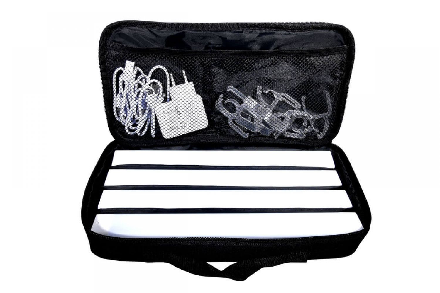- La confezione contiene: 4x LED con batteria integrata, 4x cavo USB, 1x adattatore di ricarica, 8x clip per maniglia, 1x borsa.