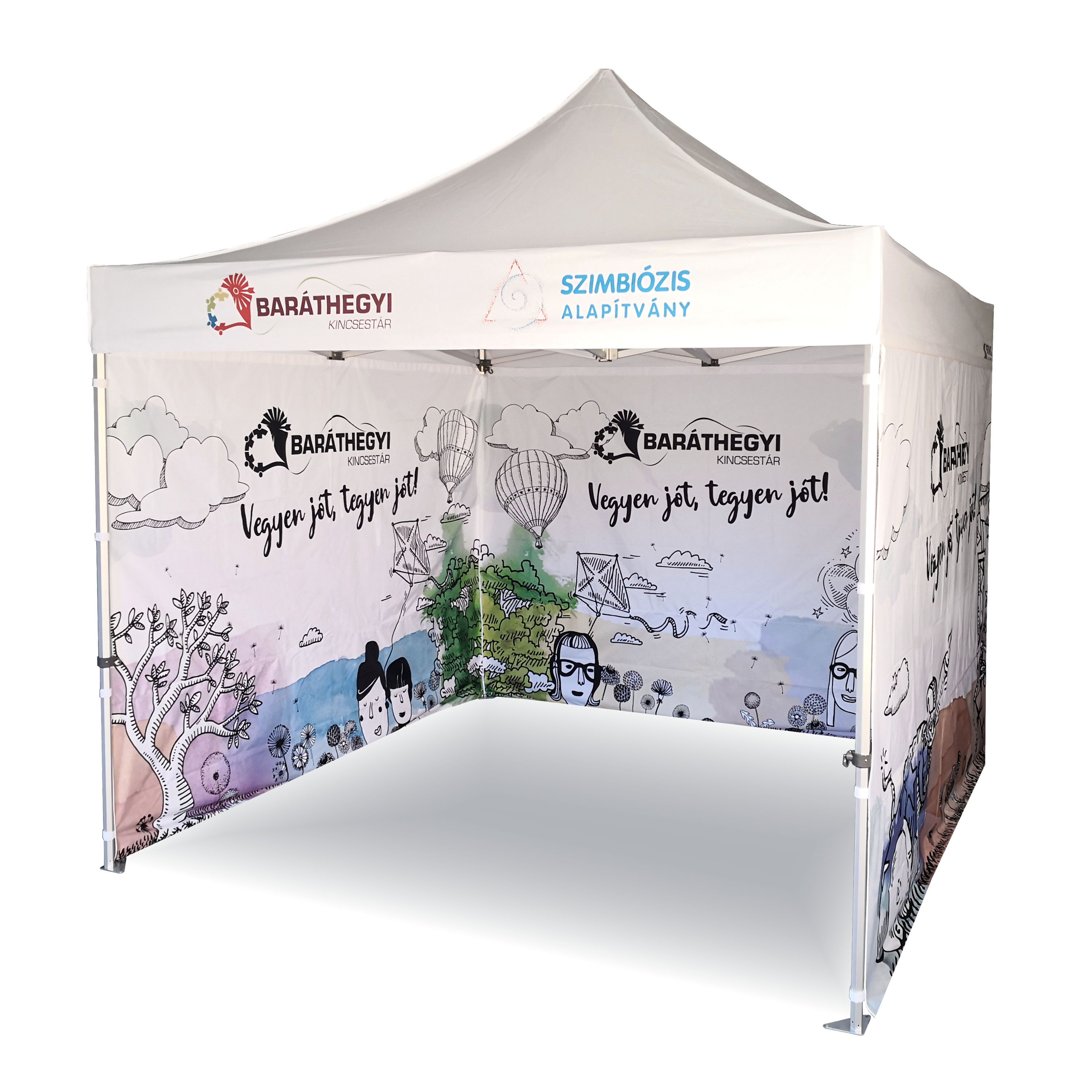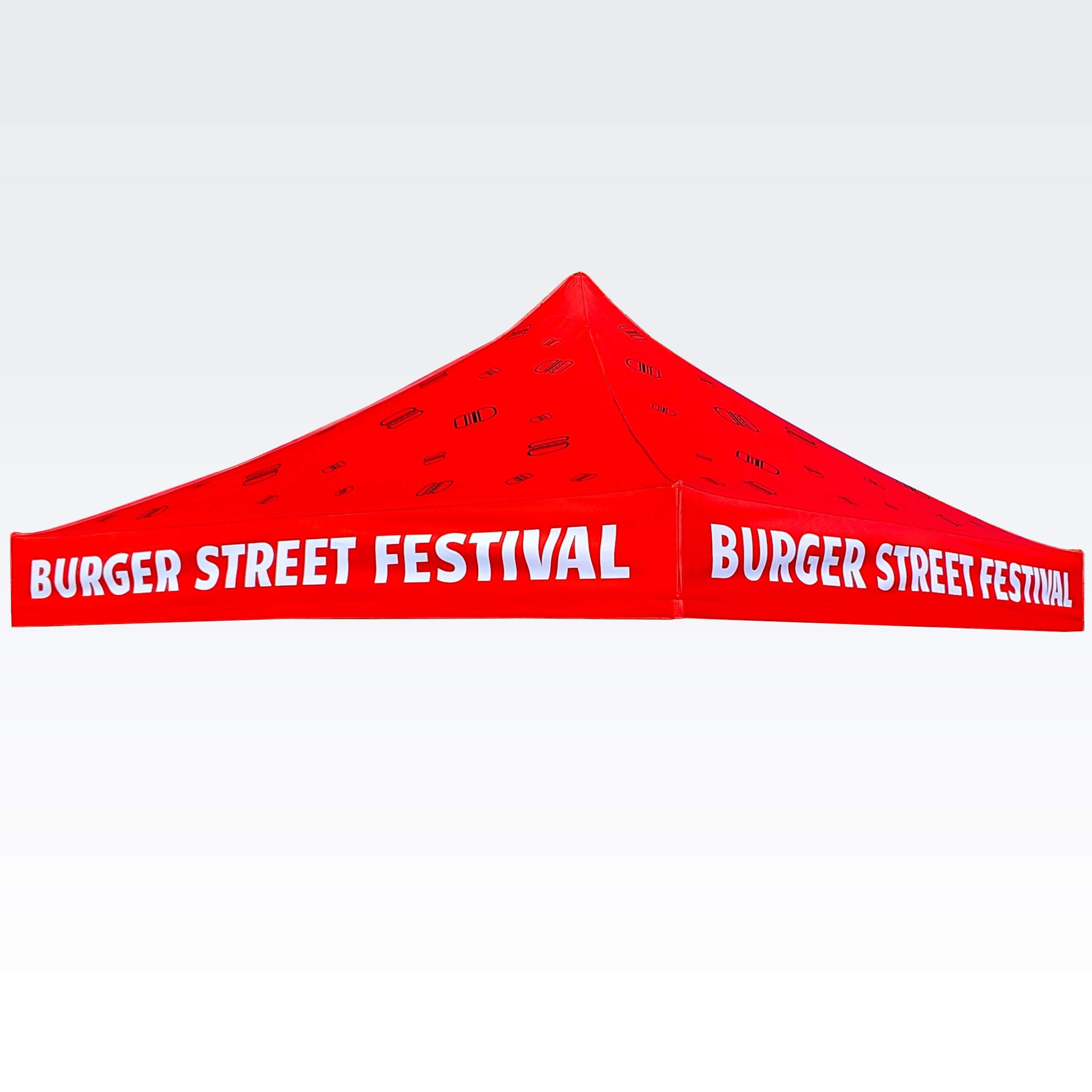 I colori sono molto vivaci, questo metodo riflette perfettamente ogni dettaglio sui gazebo pubblicitari. I colori vivaci attirano lo sguardo, e la sublimazione garantisce un utilizzo prolungato senza perdita di colore. In questo metodo, il prezzo rimane invariato indipendentemente dalla dimensione della stampa (la dimensione della stampa non influisce sul prezzo, il costo delle pareti o del tetto rimane invariato). Più grande è la stampa, più visibile sarà la pubblicità.